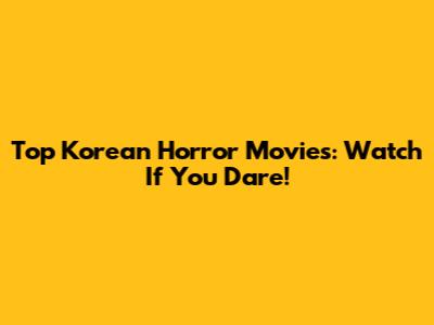 Top Korean Horror Movies: Watch If You Dare!